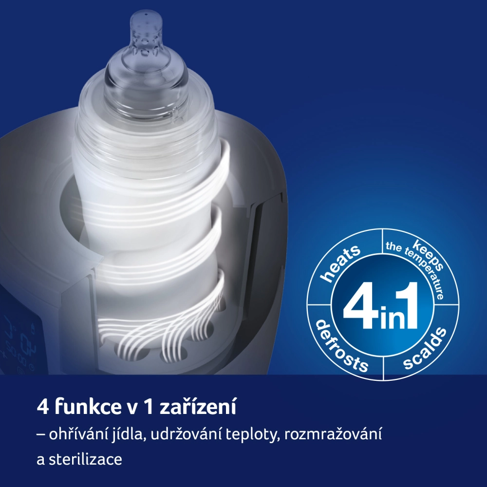 LOVI Flaschenwärmer 4-in-1. Schnelles und gleichmäßiges Erwärmen. Intuitive Bedienung auf einem übersichtlichen Display. 4 Funktionen in drei Modi: BOTTLE-Modus – Erwärmen von Flüssigkeiten in der Flasche, Auftauen von in Beuteln gelagerten Speisen. Hält die gewünschte Temperatur bis zu 10 Stunden. HOT-Modus – schnelles Erwärmen von Speisen + Sterilisationsfunktion für Flaschen und Zubehör. DINNER-Modus – hält die gewünschte Temperatur bis zu 3 Stunden. Sicher – automatische Abschaltung bei Wassermangel im HOT-Modus. Im Lieferumfang Messbecher für Wasser. Der LOVI Wärmer ist eine ideale und sichere Methode zum Erwärmen von Speisen. Er enthält einen Thermostat, der die eingestellte Temperatur sehr lange hält. Er schützt die Speisen vor Überhitzung und dem Verlust wertvoller Vitamine und Mineralstoffe. Der super schnelle LOVI-Wärmer stellt die Erwärmungszeit automatisch ein, unabhängig davon, ob die Speise gekühlt, gefroren oder Raumtemperatur hat. Der LOVI Wärmer ist zum Erwärmen von Speisen in folgenden Flaschen- oder Gläschenarten bestimmt: • in LOVI-Flaschen und den meisten anderen Weithalsflaschen • in klassischen Flaschen • in Gläschen mit fertigen Babynahrungen. Die maximale Flaschenbreite, die in diesen Wärmer passt, beträgt 6,5 cm. 4 Funktionen in 1 – erwärmt, hält warm, taut auf und sterilisiert mit Dampf. Schnell – erwärmt Speisen bereits in 2 Minuten, was ihn den meisten auf dem Markt erhältlichen Wärmern überlegen macht. *80 ml Milch/Wasser mit einer Ausgangstemperatur von 21°C. Universell – kompatibel mit den meisten auf dem Markt erhältlichen Babyflaschen. Sicher – automatische Abschaltung bei Wassermangel im HOT-Modus. Der Wärmer entspricht den Anforderungen: Richtlinie 2006/95/EG des Europäischen Parlaments und des Rates zur Angleichung der Rechtsvorschriften der Mitgliedstaaten betreffend elektrische Betriebsmittel zur Verwendung innerhalb bestimmter Spannungsgrenzen. Richtlinie 2011/65/EU des Europäischen Parlaments und des Rates zur Beschränkung der Verwendung bestimmter gefährlicher Stoffe in elektrischen und elektronischen Geräten. Richtlinie 2004/108/EG des Europäischen Parlaments und des Rates zur Angleichung der Rechtsvorschriften der Mitgliedstaaten über die elektromagnetische Verträglichkeit. Hinweis: Genaue Anweisungen zur geeigneten und richtigen Pflege des Produkts finden Sie in der Bedienungsanleitung.