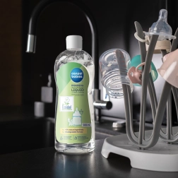 Entfernt zuverlässig Rückstände von Milch, Brei und Säften und lässt sich leicht abspülen – ideal für die tägliche Pflege von Babyzubehör.