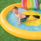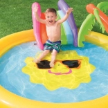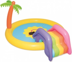 Verwandeln Sie den Garten in einen Mini-Wasserpark! Der BESTWAY-Wasserspielplatz für Kinder mit fröhlichem Sonnendesign lädt an heißen Tagen zum Toben und Erfrischen ein. Einfach den Gartenschlauch anschließen und der eingebaute Sprühkopf sorgt für eine erfrischende Fontäne. Die abnehmbare Rutsche in buntem Design begeistert kleine Abenteurer, während das weiche und strapazierfähige Vinyl komfortables und sicheres Spielen gewährleistet.
