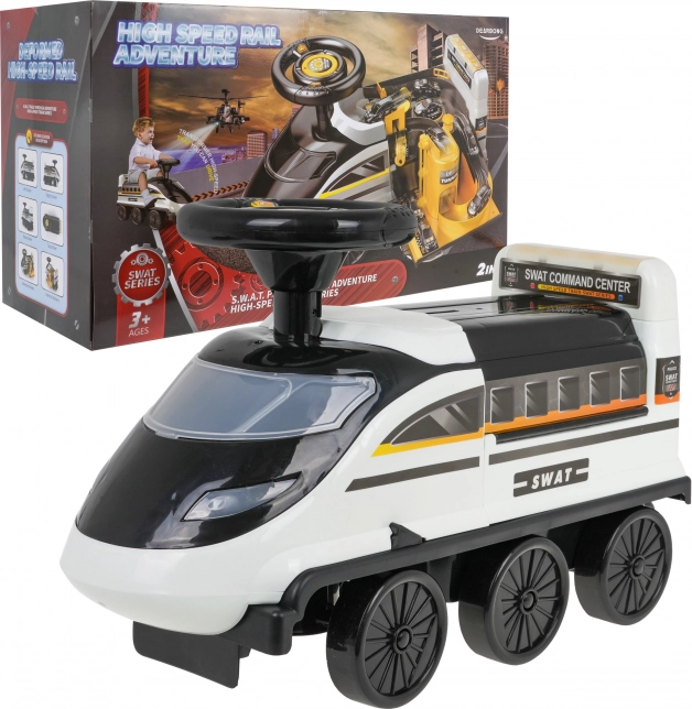 Das Rutschfahrzeug ist vom Polizeithema inspiriert, inklusive einzigartigem SWAT-Design und interaktiven Funktionen, die die Vorstellungskraft anregen.