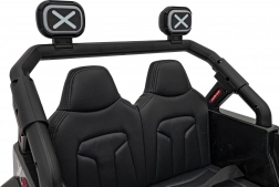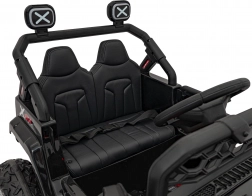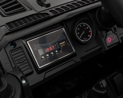 Die Innenausstattung umfasst luxuriöse Sitze aus Ökoleder und ein multifunktionales Audiopanel mit FM-Radio, Bluetooth sowie Wiedergabeoptionen von SD-Karten und USB. Zusätzlich können Kinder die integrierten Melodien und Soundeffekte beim Fahren genießen.