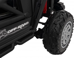 Schenken Sie Ihrem Kind ein einzigartiges Fahrerlebnis mit diesem schwarzen elektrischen Offroad-Kinderauto. Ausgestattet mit vier 35W-Motoren bietet es starke Leistung und eine sanfte Fahrt sowohl auf ebenem Untergrund als auch im Gelände. Der doppelte Akku 12V/7Ah liefert ausreichend Energie für langanhaltenden Spaß.