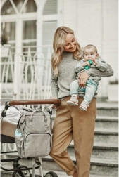 Strapazierfähige Materialien, eine abwaschbare Unterlage im Design des Rucksacks und eine wasserabweisende Tasche sorgen für einfache Pflege. Dank der Möglichkeit zur Befestigung am Kinderwagen, gepolsterten Trägern und cleveren Details ist der Rucksack die ideale Wahl für Eltern, die Stil und Funktionalität kombinieren möchten.