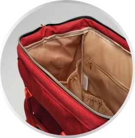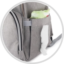 Die Seitentasche für Feuchttücher, die versteckte Dokumententasche und sichere Taschen für Kleinigkeiten sorgen dafür, dass Wichtiges immer griffbereit ist.
