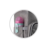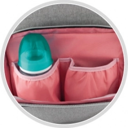 Die integrierte Thermotasche hilft, die Temperatur des Getränks zu halten. Die Seitentasche ist ideal für eine Flasche oder einen Becher sowie für den schnellen Zugriff auf Feuchttücher.