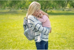 Verstellbare Träger, obere Griffe und die Möglichkeit der einfachen Befestigung am Kinderwagen sorgen für Komfort bei Spaziergängen und längeren Ausflügen.