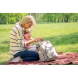 Der Rucksack lässt sich bequem am Kinderwagen befestigen, besteht aus robusten Materialien und ist pflegeleicht – das Innere nach Gebrauch einfach mit einem feuchten Schwamm auswischen. Ergonomische Träger und praktische obere Griffe sorgen für angenehmen Tragekomfort auch bei voller Beladung.