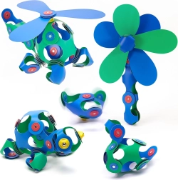CLIXO Crew in Blau und Grün bietet Kindern ein modernes magnetisches Bauerlebnis. Dank flexibler Teile und starker Magnete entstehen stabile 2D‑ und 3D‑Modelle, die sich leicht zusammenbauen, zerlegen und neu kombinieren lassen. Das leichte, kompakte Set ist perfekt für zu Hause und unterwegs – Bauinspirationen finden Sie direkt auf der Verpackung.