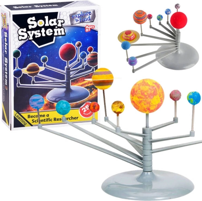 Das Modell hat eine Spannweite von ca. 30 cm und eine Höhe von etwa 15 cm. Der Durchmesser der Planeten variiert von 1,5 cm bis 4 cm. Mit diesem Bausatz können Kinder ihre manuellen Fähigkeiten, Kreativität und Vorstellungskraft entwickeln. Die Schachtel ist wunderschön gestaltet und eignet sich ideal als Geschenk für jeden jungen Astronomen.