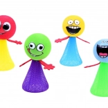 Der Wicht ist in verschiedenen Farben erhältlich. Er hat einen weichen runden Kopf mit frechem Gesichtsausdruck und eine federnde Basis.