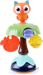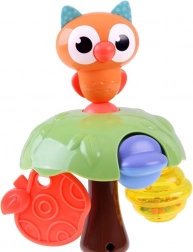 Die magische Rassel mit Eulenmotiv ist aus hochwertigem Kunststoff gefertigt und verfügt über einen Saugnapf, der eine einfache Befestigung auf glatten Oberflächen wie Tisch oder Stuhl ermöglicht. Dieses bunte Spielzeug ist der ideale Begleiter beim Füttern oder bei regulärem Spiel. Die Rassel ermöglicht es dem Kind, das Spielzeug zu beobachten, zu drehen und zu bewegen, was seine sensorische und motorische Entwicklung fördert.