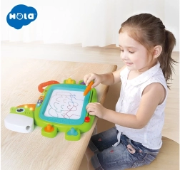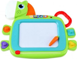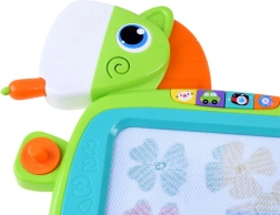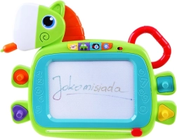 Diese bunte magische Tafel hat viele fantastische Funktionen, die die Kreativität und Feinmotorik der Kinder fördern. Sie können darauf mit einem Stift zeichnen, schreiben oder Muster mit Stempeln kreieren. Nachdem die Zeichnung fertig ist, kann das Bild leicht mit dem Schiebewischmechanismus gelöscht werden. Das interaktive Spiel wird von Licht- und Klangeffekten begleitet:
