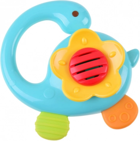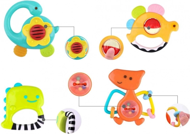 Bunte Rasseln und Beißringe sind so konzipiert, dass sie das Seh- und Hörvermögen des Kindes stimulieren.