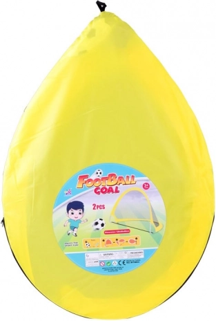 Genießen Sie Fußball ohne komplizierte Montage. Die leichte, flexible Konstruktion ermöglicht das schnelle Aufklappen und Zusammenlegen der Tore innerhalb weniger Sekunden. Das Set lässt sich in der mitgelieferten Tasche leicht transportieren, und mit Metallheringen sichern Sie die Tore fest im Rasen oder Erdreich.