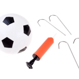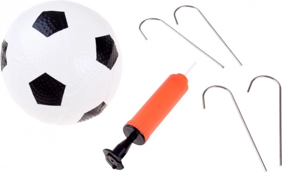 Im Lieferumfang ist alles für das sofortige Spiel enthalten: aufblasbarer Ball, Handpumpe, vier Heringe und eine praktische Tasche.