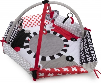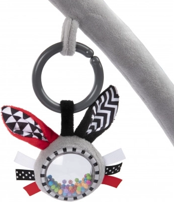 Mit Betonung auf Sicherheit und Qualität erfüllt die Decke die Anforderungen der europäischen Richtlinien zur Spielzeugsicherheit. Sie ist ideal für Neugeborene, die anfangs nur Kontraste erkennen. Die Spielzeuge können leicht abgenommen und separat verwendet werden, was die Spiel- und Spaßmöglichkeiten noch erweitert.