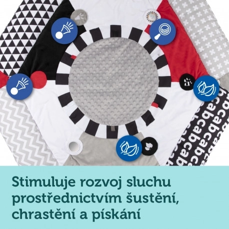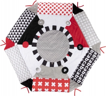 Dank der kontrastreichen Farben und vielfältigen Texturen hilft diese Decke, das Sehvermögen und die Fähigkeit zur Konzentration schon von klein auf zu entwickeln.