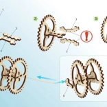 Das Modell wird von einem Gummimotor angetrieben und bietet drei Modi: „Parken“, „Fahren“ und „Sport“, in dem der Traktor mit voller Leistung losfährt. Bei richtiger Pflege (Schmierung ausgewählter Teile mit Wachs) genießen Sie einen gleichmäßigen Lauf und eine lange Lebensdauer. Der Bausatz fördert Feinmotorik, Geduld und Verständnis für Mechanik.