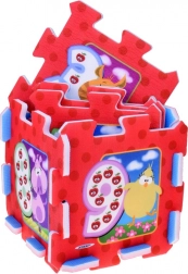 Die Teile werden wie ein Puzzle verbunden und lassen sich zu einer flachen Spielfläche oder auch zu 3D-Formen (Würfel oder Häuschen) zusammensetzen, was den Spielspaß erhöht und das räumliche Denken fördert. Die Matte ist leicht zu pflegen – einfach mit einem feuchten Tuch abwischen. Die rutschfeste Oberfläche sorgt für mehr Stabilität beim Spielen.