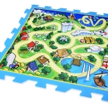 Diese Schaumstoffmatte/Puzzle mit Stadt- und Straßenmotiv verwandelt jedes Zimmer in eine spannende Verkehrszone. Teile aus weichem, aber robustem Schaum schaffen eine stoßdämpfende und sichere Oberfläche zum Sitzen, Krabbeln und für die ersten Schritte. Kinder können mit Autos über die Straßen fahren, Farben und Formen lernen und ihre Fantasie entfalten.