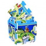 Jedes Teil besitzt einen verzahnten (Puzzle-)Rand für schnelles Verbinden ohne Verrutschen. Aus der Matte lassen sich zudem 3D-Würfel oder einfache Häuschen bauen – das Spiel wechselt so von der Fläche in den Raum. Geeignet für Kinderzimmer, Terrasse und Garten.