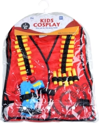 Dieses Cosplay-Set umfasst eine rote taktische Weste mit Schlaufen für Munition, eine blaue Kinderpistole und ein Set weicher Schaum-Pfeile. Die Weste besteht aus strapazierfähigem Textil mit verstellbaren Elementen und passt Kindern ungefähr von 3 bis 8 Jahren. Das gesamte Set ist leicht, bequem und ideal für dynamisches Spiel sowie Zieltraining.