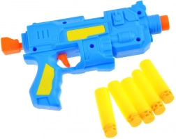 Enthalten sind eine rote Weste, eine blaue Kinderpistole und ein Set weicher Munition – spielbereit direkt nach dem Auspacken.