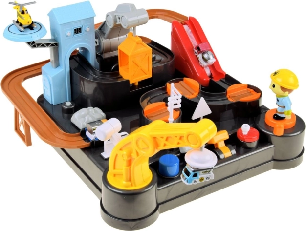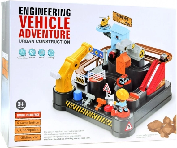 Diese farbenfrohe mechanische Bahn mit Baustellenthema bietet eine komplette Bauszene mit Hindernissen, Aufzug und einem Magnetkran. Kinder führen die Fahrzeuge vom Beladen bis zum Entladen, bedienen Drehscheiben und Hebel und verfolgen, wie die Autos der Strecke folgen. Die integrierte digitale Uhr am Turm ermöglicht Zeitmessung und spielt nach dem Einschalten eine fröhliche Melodie.