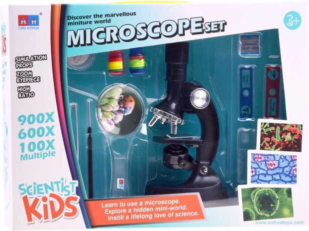 Die Vergrößerungen 100×, 600× und 900× ermöglichen Kindern, alles vom Einfachen bis zu detailreichen Präparaten zu beobachten. Ideal für die ersten Schritte in die Welt der Mikroskopie.