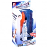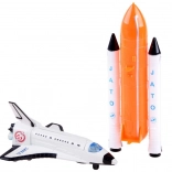 Zum Set gehört ein Shuttle-Modul mit den Maßen 15 cm x 10,5 cm x 6 cm und ein Haupttank mit Hilfsraketen in der Größe 22 cm x 7 cm x 4 cm.