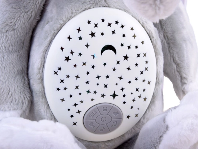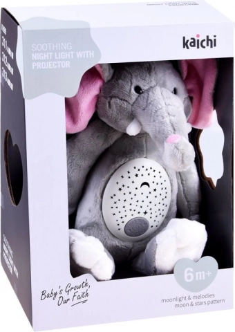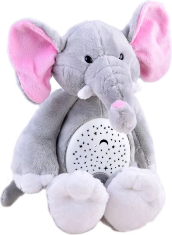 Der Plüschelefant dient als Nachtlicht und bietet beruhigende Melodien, die den Kindern beim Einschlafen helfen.