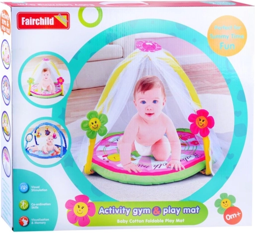 Die Matte ist mit farbenfrohen Mustern ausgestattet, die die Aufmerksamkeit der Kinder auf sich ziehen und ihre Sinne für Farben und Formen stimulieren.