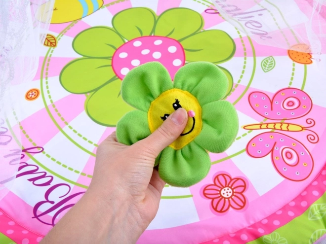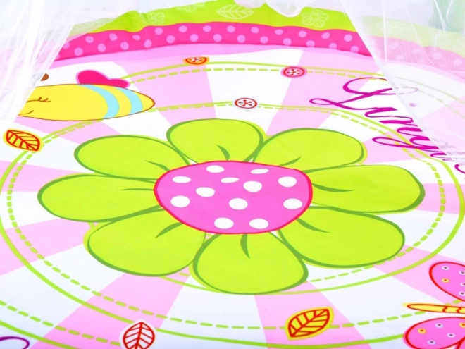 Die Baby-Spielmatte ist so konzipiert, dass sie einen sicheren und bequemen Spielplatz für Ihr Kind schafft. Ihre leuchtenden Farben und das weiche Material sind ideal für tägliches Spielen oder Entspannung. Die Matte ist mit Bögen mit Blumen und einem Moskitonetz ausgestattet, die vor Insekten schützen und die Attraktivität für Kinder erhöhen.