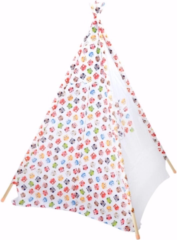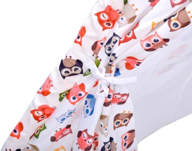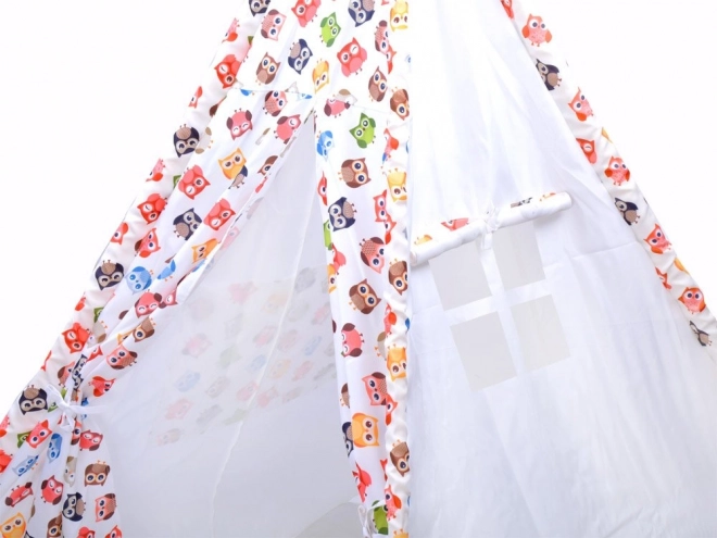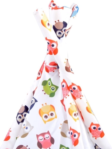Bereiten Sie das Zelt nach der Fantasie Ihres Kindes vor, mit bunten Eulenmotiven, die dem Raum eine fröhliche Atmosphäre verleihen.
