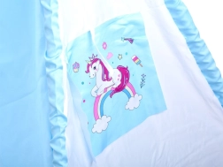 Ein zauberhaftes Kinder-Tipi-Zelt mit Einhornmotiv verwandelt Zimmer und Garten in eine sichere Ecke voller Fantasie. Es bietet viel Platz zum Spielen, einfache Montage und einen abwaschbaren Stoffbezug. Dank der zum Bindeen vorgesehenen Eingangslappen und dem Fenster zur Aufsicht wird das Spielen noch unterhaltsamer und komfortabler.