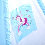 Fröhliche Illustrationen von Sternchen, Regenbögen und Einhörnern schaffen eine anregende Umgebung für kindliche Fantasie und kreative Spiele.