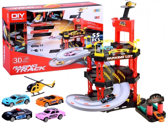 Dieses dreistöckige Parkhaus mit Rampen ermöglicht das gleichzeitige Parken und Spielen mit mehreren Autos, was dem Spiel Realismus und Spaß verleiht.