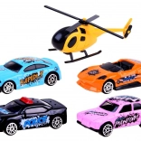 Im Set enthalten sind vier verschiedene Autos und ein Hubschrauber in kräftigen Farben, ideal zur Förderung der kindlichen Fantasie und zur Entwicklung von Spielgeschichten.