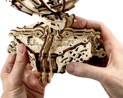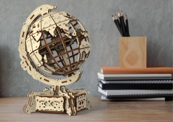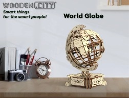 WOODEN CITY legt Wert auf Ökologie – das Produkt wird ohne Kunststoffverpackungen geliefert. Reichhaltige Gravuren, präzise Ausschnitte und ein funktionales Schubfach im Ständer machen das Modell nicht nur zu einem Lernobjekt, sondern auch zu einem markanten Wohnaccessoire.