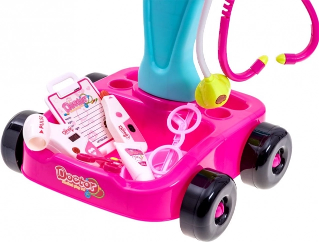 Der Wagen mit Rollen hält alle Instrumente griffbereit und ermöglicht es Kindern, „zum Patienten zu fahren“ – überall in der Wohnung.
