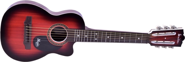 Die realistische Holzoptik, komfortable Abmessungen und die sichere Ausführung unterstützen spielerisches Lernen und die Entwicklung der Motorik. Die Gitarre wird in einer Geschenkverpackung geliefert und eignet sich daher hervorragend als originelles Geschenk für kleine Musiker.