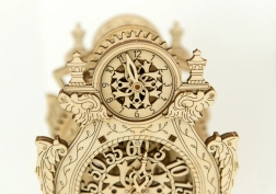 Die Magische Uhr von Wooden City ist nicht nur ein mechanisches Modell, sondern auch ein Kunstwerk. Dieses 3D-Puzzle ermöglicht nicht nur das Zusammensetzen, sondern auch das Beobachten der faszinierenden Bewegung des Uhrwerks, das dank Pendel und Zahnrädern funktioniert. Mit zwei Zifferblättern – eines für Stunden und eines für Minuten – können Sie den Lauf der Zeit in einer magischen Atmosphäre verfolgen.