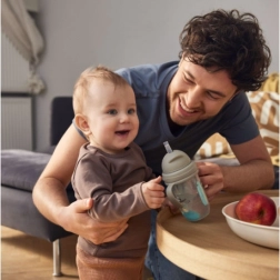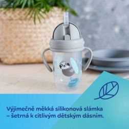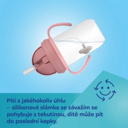 Bringen Sie Ihrem Kind sauberes, selbstständiges Trinken bei. Der einzigartige Silikonstrohhalm mit Gewicht folgt dem Flüssigkeitsstand, sodass das Kind in jeder Position bequem trinken kann. Die spezielle Membran lässt das Getränk nur beim Saugen durch und minimiert so Verschütten. Der praktische klappbare Deckel schützt den Strohhalm und sorgt beim Transport für Dichtigkeit.