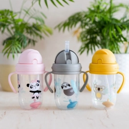 Ergonomische, breite Griffe erleichtern kleinen Kindern das Greifen. Der Becher ist geeignet ab 6 Monaten, besteht aus sicheren BPA-freien Materialien und ist mit Ersatzstrohhalmen kompatibel, was die Pflege erleichtert.