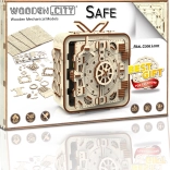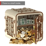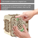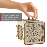 Der 3D-Puzzle-Tresor von Wooden City ist das ideale Geschenk für Liebhaber von Rätseln und schönem Design. Dieses funktionale Modell imitiert den Mechanismus eines Banktresors mit einer dreistelligen Kombination, die jederzeit geändert werden kann. Der Tresor verfügt außerdem über eine geheime Funktion, die Ihnen hilft, falls Sie den Code vergessen. Der Gesamteindruck wird durch den Griff für einfaches Tragen und den Innenraum mit Ablage verstärkt.