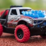 Entdecken Sie Vollgas-Spaß mit dem 4x4-Offroad-Metallauto. Der Aufziehmechanismus sorgt für einen schnellen Start, die markanten Räder meistern Unebenheiten, und Licht- sowie Soundeffekte unterstreichen jedes Manöver. Eine tolle Wahl für kleine Autofans und actionreiche Rollenspiele.