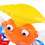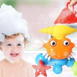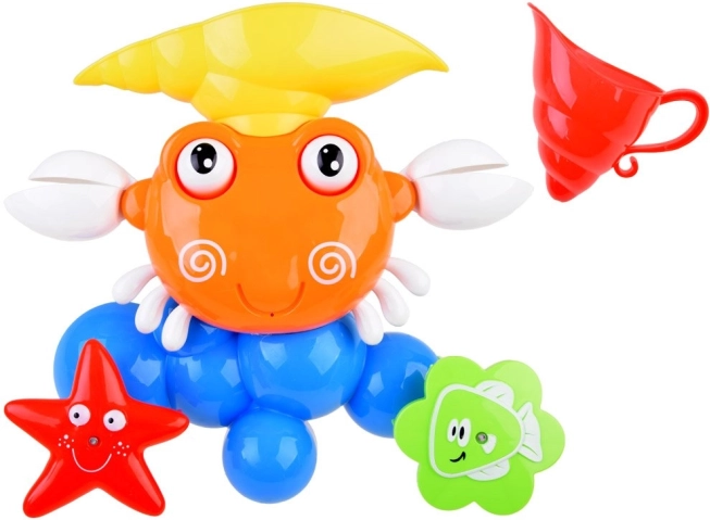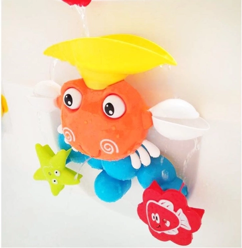 Die bunte Krabbe mit Fontäne verwandelt jedes Bad in eine unterhaltsame Wassershow. Einfach Wasser in den Behälter auf dem Kopf gießen – Räder beginnen sich zu drehen, Augen und Scheren bewegen sich und aus dem Mund der Krabbe sprudelt eine kleine Fontäne. Das Spielzeug lässt sich mit starken Saugnäpfen leicht an Fliesen, Wanne oder Duschwänden befestigen.