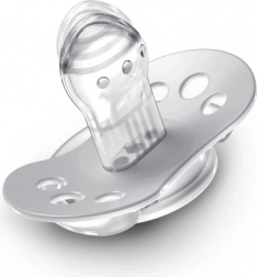 Aus Silikonschichten gefertigt für Flexibilität im Rhythmus des Saugens. Die symmetrische Form erinnert an die Mutterbrustwarze und ermöglicht ein leichtes Einführen in den Mund.