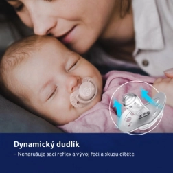 Dynamischer Silikonschnuller LOVI wurde entwickelt, um die natürliche und gesunde Entwicklung des Gaumens, der Zähne und des Zahnfleisches des Kindes zu unterstützen. Ohne Bisphenol A und dank der Verwendung von Silikon besonders langlebig.