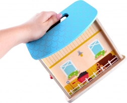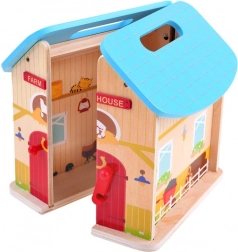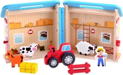 Holzbauernhof für Kinder kann der Anfang eines großen Abenteuers sein. Die Fantasie und Kreativität der Kinder sind grenzenlos. Nach dem Spiel kann das Haus geschlossen werden, was die Lagerung, den Transport erleichtert und die Sicherheit der Figuren innen gewährleistet. Dieses Spielzeug fördert kreatives Spielen, entwickelt die Vorstellungskraft und hilft, viele weitere Fähigkeiten zu entwickeln.